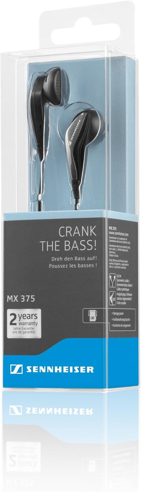 Manufacturer Sennheiser. Item model number MX 375. Your search for stylish earphones is over with the MX 375 in-ear headphones. Form factor In Ear. Cable feature Detachable. Hardware Platform MP3 Player, Tablet, Smartphone.